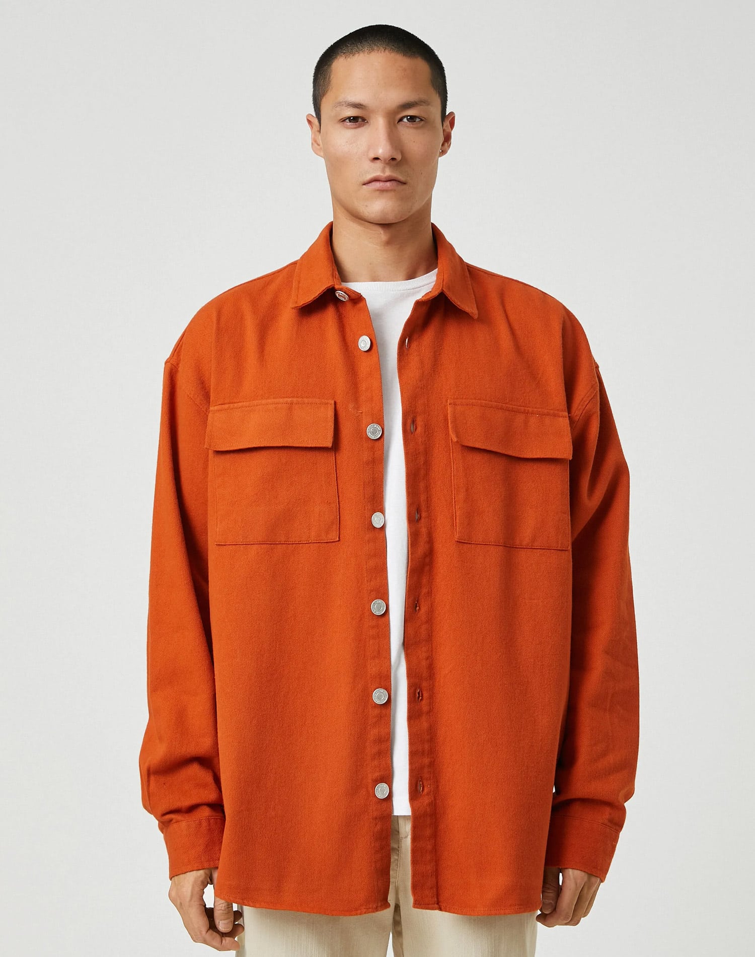 Koton Men Basic Shirt Jacket Canvas Classic Neck Buttoned Pocket Detail, Long Sleeve, Shirts, Black